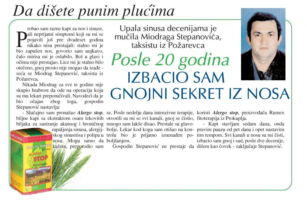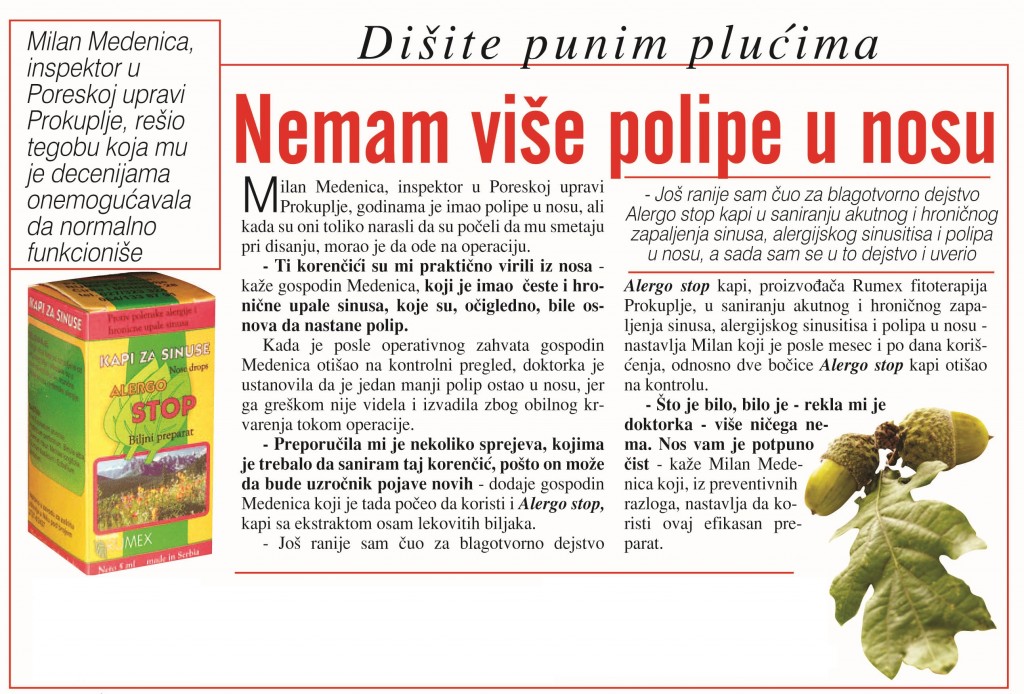 ALERGOSTOP – biljne kapi, efikasne su u primeni kod hronične upale sinusa, alergijskog sinuzitisa, kod polipa i cisti u nosu.
